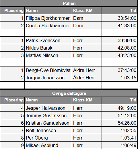 Resultatet av KM blev: